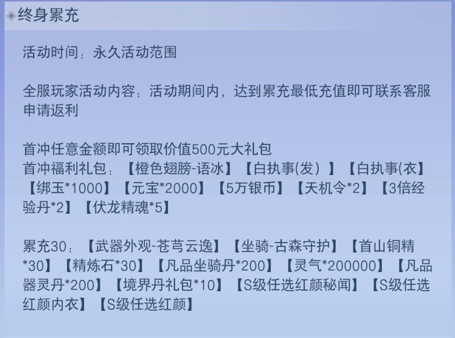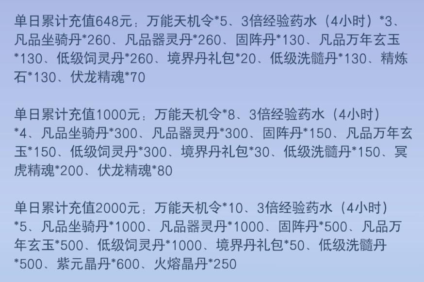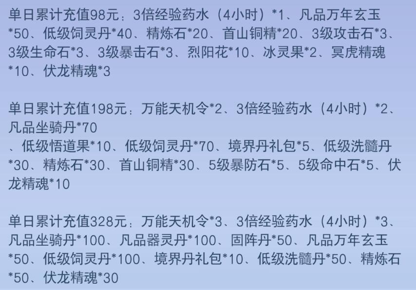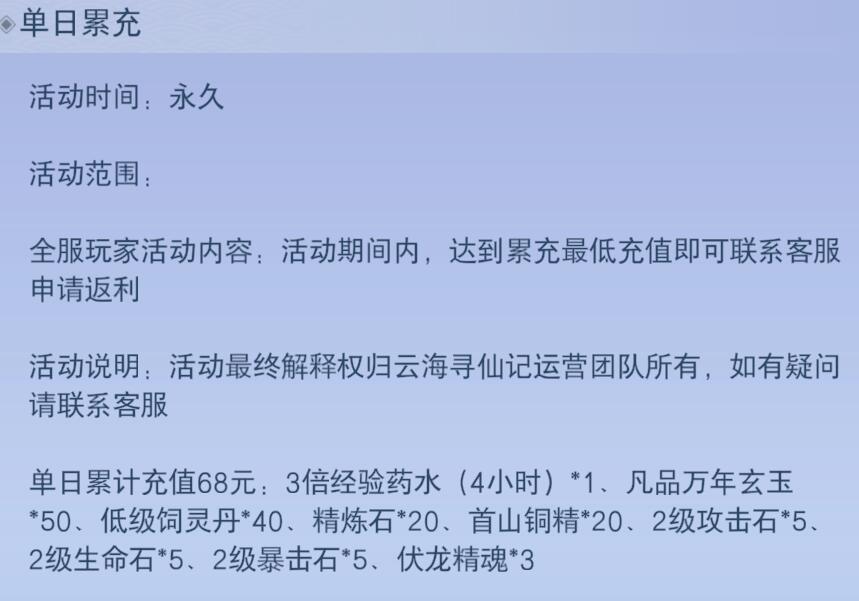 注:老用户的累积充值同时换算成"VIP等级经验"